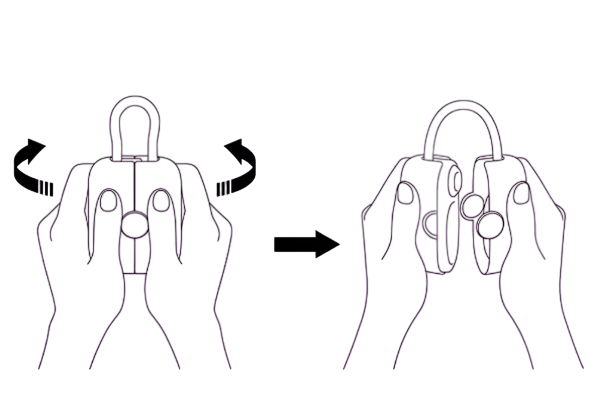 O mecanismo de abertura exclusivo da CLUTCH foi projetado para aumentar a privacidade. Ao contrário de outros produtos, você precisa segurar os dois lados do dispositivo com as duas mãos e separá-los simultaneamente. Se tentar segurar com uma mão e forçar a abrir com a outra, ele simplesmente não abrirá.