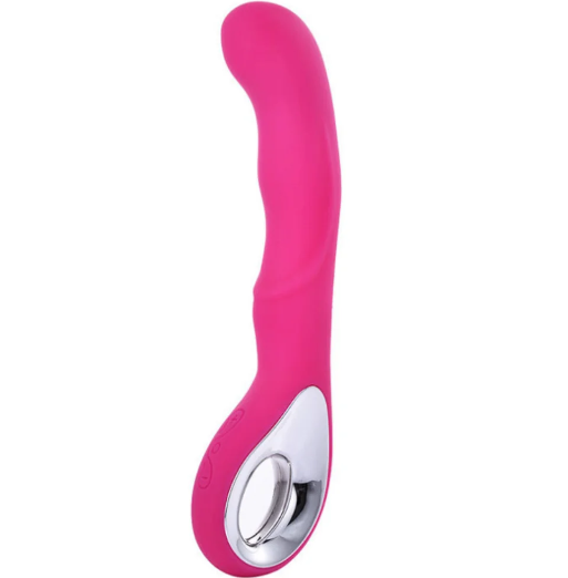 Vibrador com curvatura estimuladora ponto G com toque aveludado e detalhes metalizados.