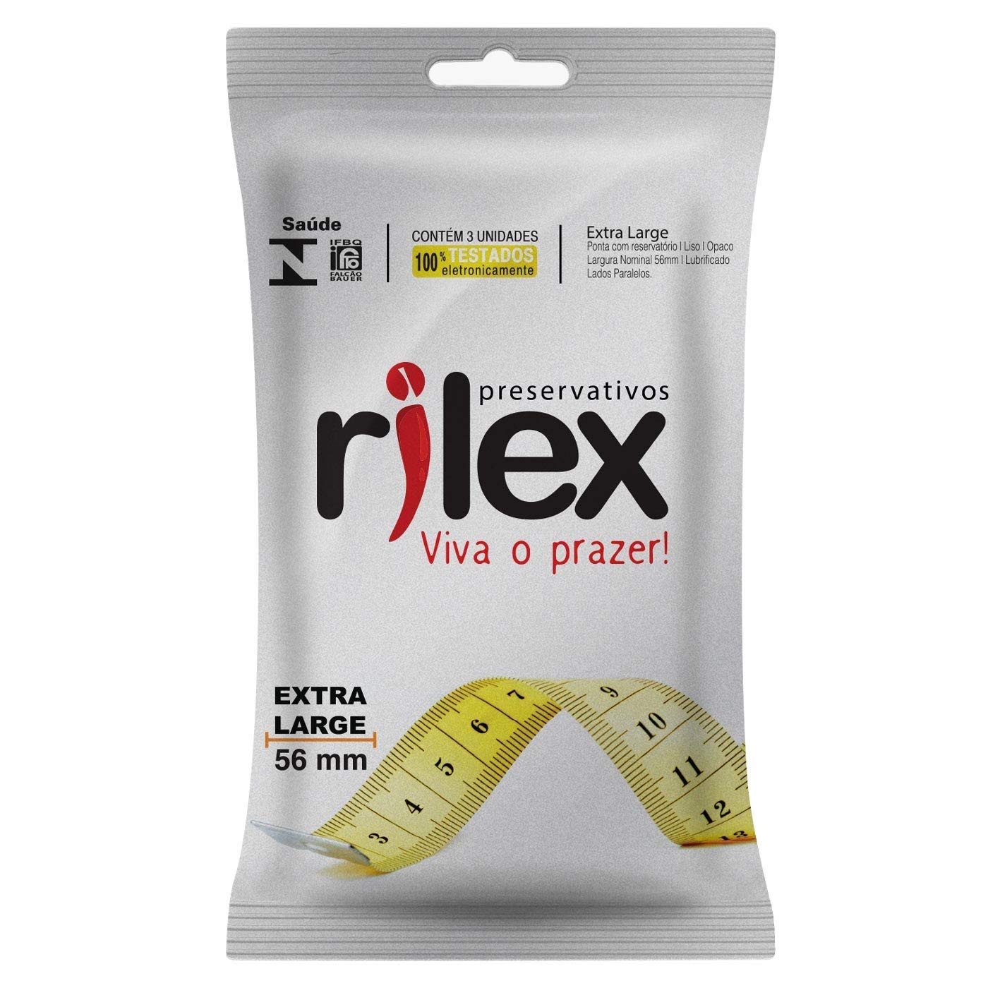 Preservativo masculino Rilex Extra Large. Agora não tem mais desculpa para falar que não gosta de preservativo porque aperta. Contém 3 unidades.