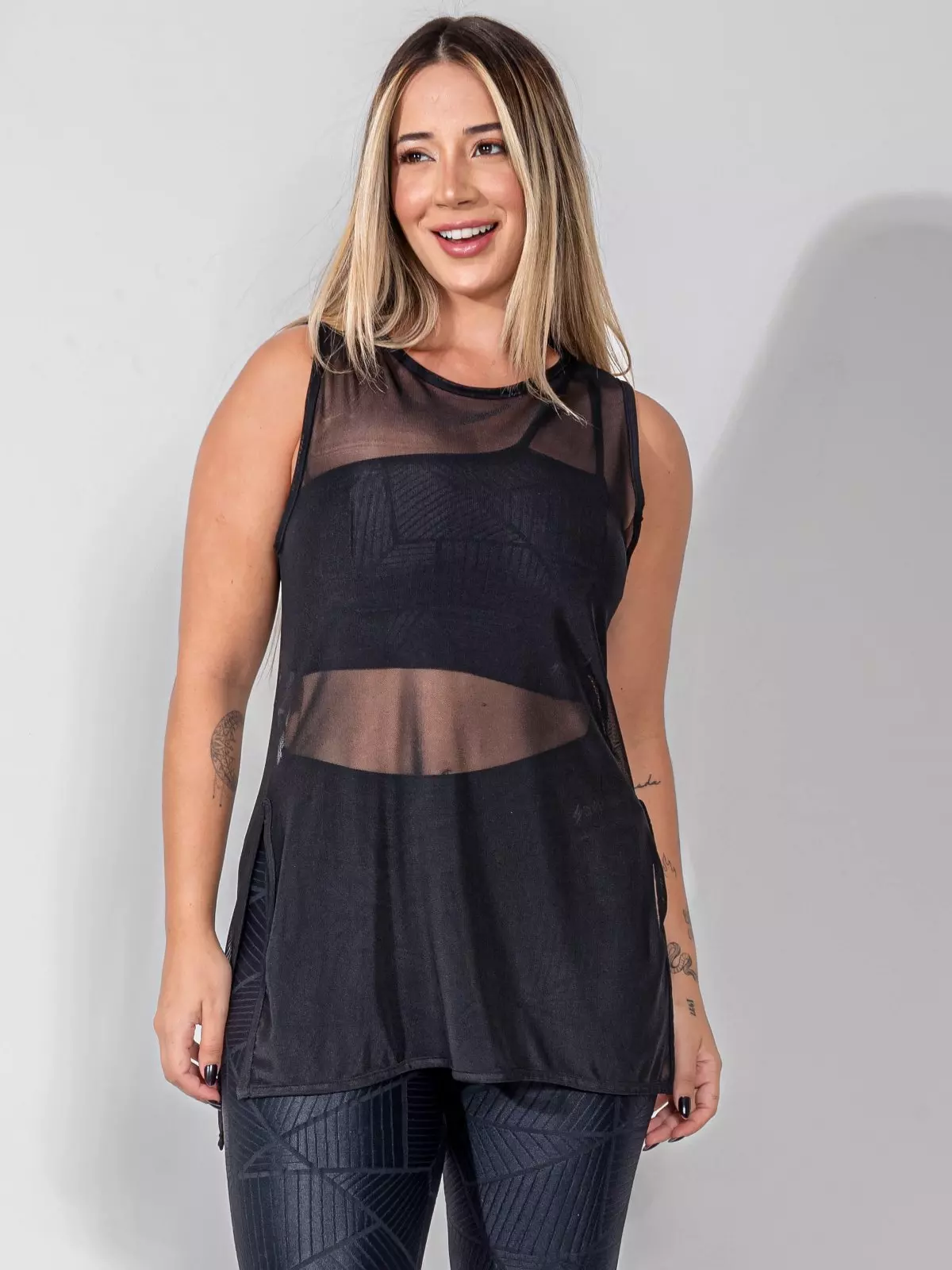 A Regata de Tule é uma roupa semitransparente, delicada e versátil que fica bem com muitas outras combinações de roupas e conjuntos. Tem uma modelagem maior em largura e comprimento, servindo para criar de estilos oversized até estilos bem ajustados em corpos maiores.